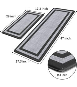Mattitude Kitchen Mat 2 PCS Cushioned Anti-Fatigue Kitchen Rugs Non-Skid Waterproof Kitchen Mats and Rugs Ergonomic Comfort Standing Mat for Kitchen. Floor. Office. Sink. Laundry. Black and Gray