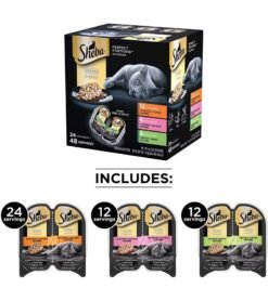 SHEBA PERFECT PORTIONS Cuts in Gravy Wet Cat Food Trays (24 Count. 48 Servings). Roasted Chicken. Gourmet Salmon and Tender Turkey Entr??e. Easy Peel Twin-Pack Trays