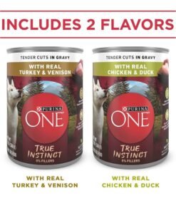 Purina ONE True Instinct Tender Cuts in Gravy With Real Turkey and Venison. and With Real Chicken and Duck High Protein Wet Dog Food Variety Pack ?C (12) 13 oz. Cans