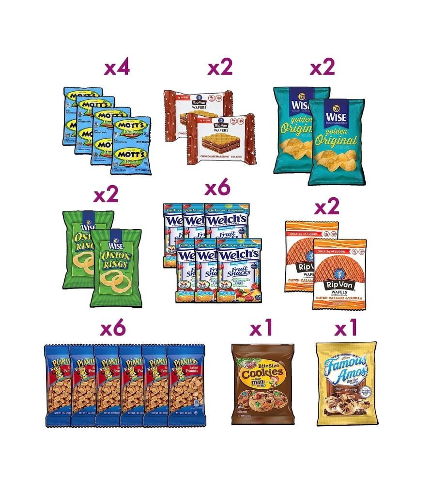 ASSORTMENT OF FLAVORS: Indulge in sweet. spicy. and salty flavors of cookies. chips. and candy. We have selectively picked a wide variety of flavors to ensure that you get an ultimate snacking experience.