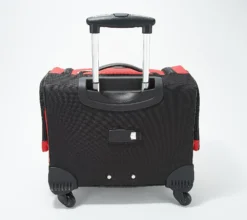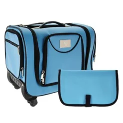 Make a quick getaway! Sized just right for short-term trips, this roomy slimline weekender bag helps you pack smarter with a toiletry case that snaps into the lid, a built-in cosmetics organizer for essentials at a glance, and an electronics pocket to keep your devices accessible. It??s also a breeze to pull through an airport or busy city streets thanks to a telescoping handle and 360-degree multidirectional wheels.