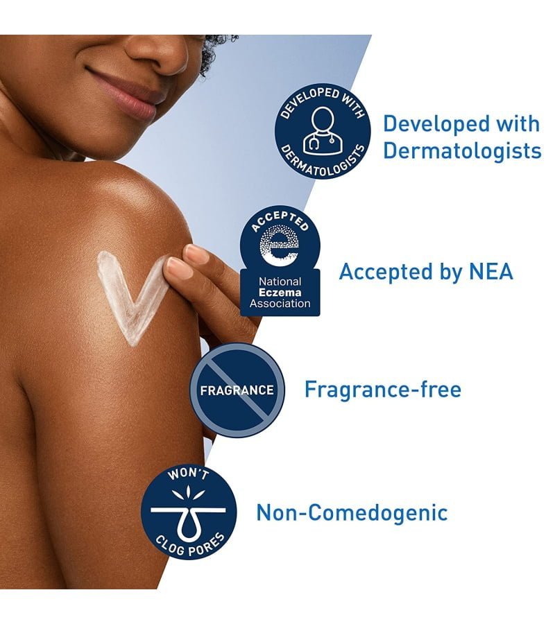Developed with dermatologistsAll CeraVe products aredeveloped with dermatologists. Moisturizing Creamisformulated without fragrance and oiland isallergy tested. TheNational Eczema Association Seal of Acceptance only accepts products that have satisfied the criteria for use for those witheczema or sensitive skin conditions. |