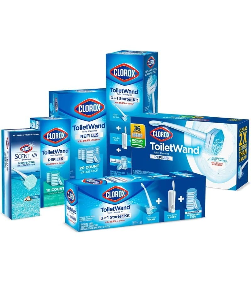 BATHROOM CLEANING PRODUCTS: These ToiletWand refills with Clorox cleaner are the perfect addition to your cleaning supplies ?C this all-in-1 bathroom household cleaner eliminates the need to carry around a bottle of cleaner and germ-ridden toilet brush