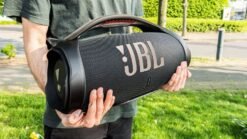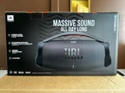 - IP67 dust and water proof: To the pool. To the park. The JBL Boombox 3 is IP67 dustproof and waterproof. so you can bring your speaker anywhere. rain or shine. Strong. bold design: We??ve updated the sleek. iconic JBL silhouette. With twin sidecaps and a sturdy metal handle with an eye-catching orange silicone grip. you can take your music??and your style??anywhere.