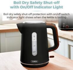 - BOIL DRY SAFETY SHUT-OFF WITH ON/OFF INDICATOR LIGHT: Boil dry safety shut-off protection for added peace of mind. The on/off switch with indicator light shows when the kettle is boiling