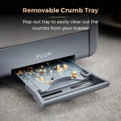 - REMOVABLE CRUMB TRAY: A pop-out removable crumb tray makes it easy to clear out the toast crumbs and maintain a clean toaster