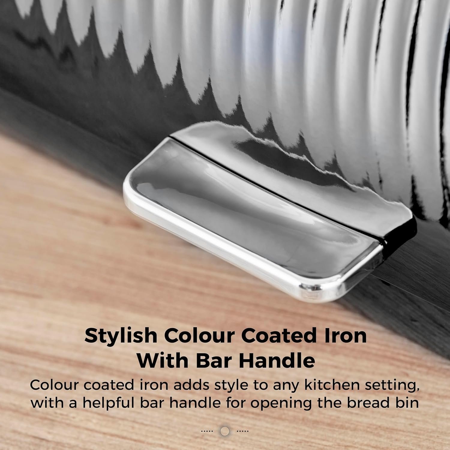 - STYLISH COLOUR COATED IRON WITH BAR HANDLE: Colour coated iron adds style to any kitchen setting. with a helpful bar handle for opening the bread bin