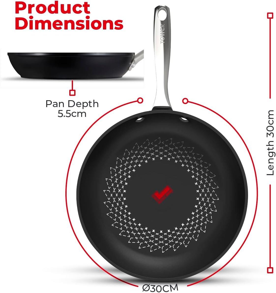 - SMARTSTART TECHNOLOGY: A temperature sensor is built into the non-stick coating that changes to dark red once the pan reaches the optimum temperature. Pop the pan on the hob to heat up. wait for the SmartStart tick to change to dark red & take the guess work out of cooking for perfect results