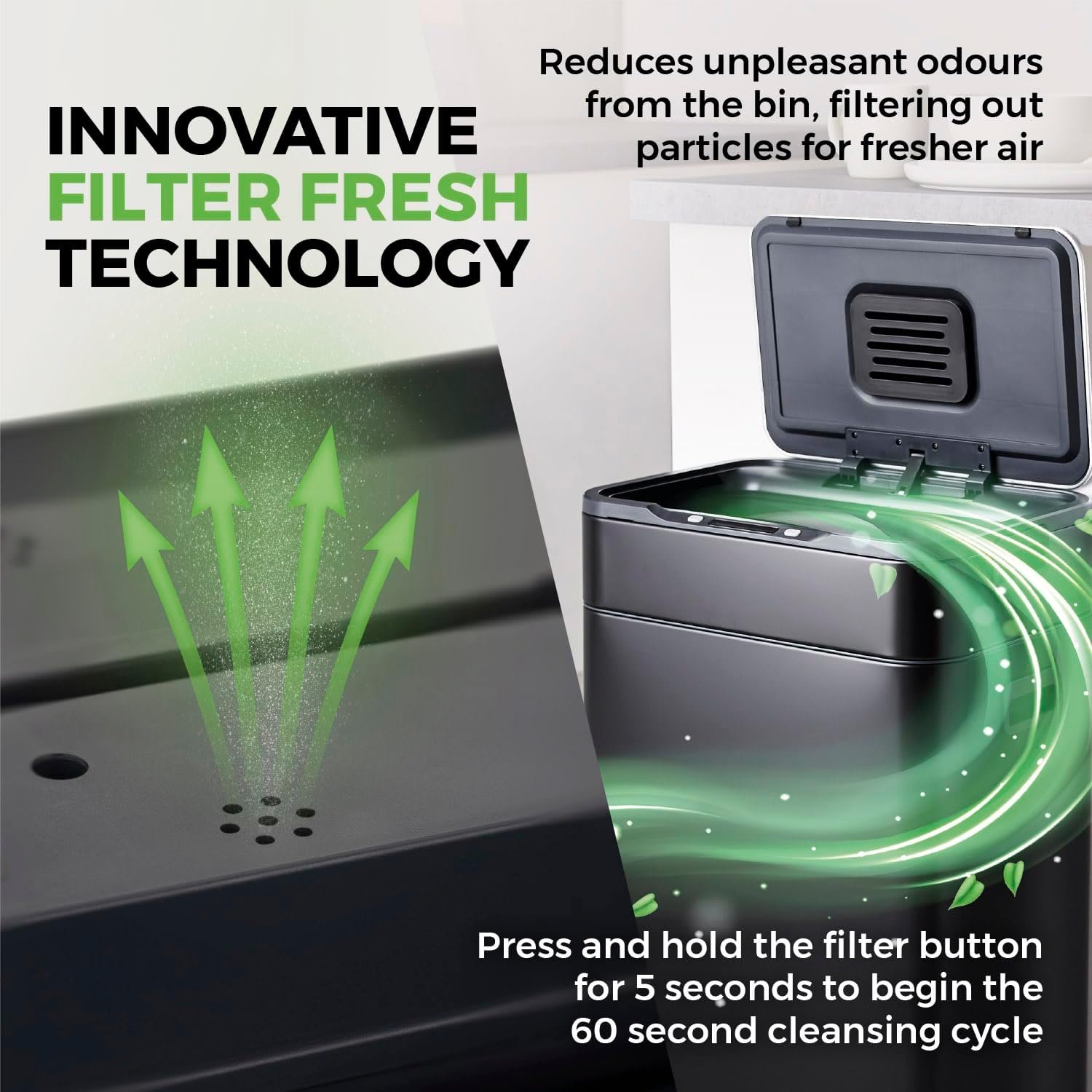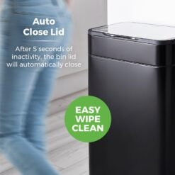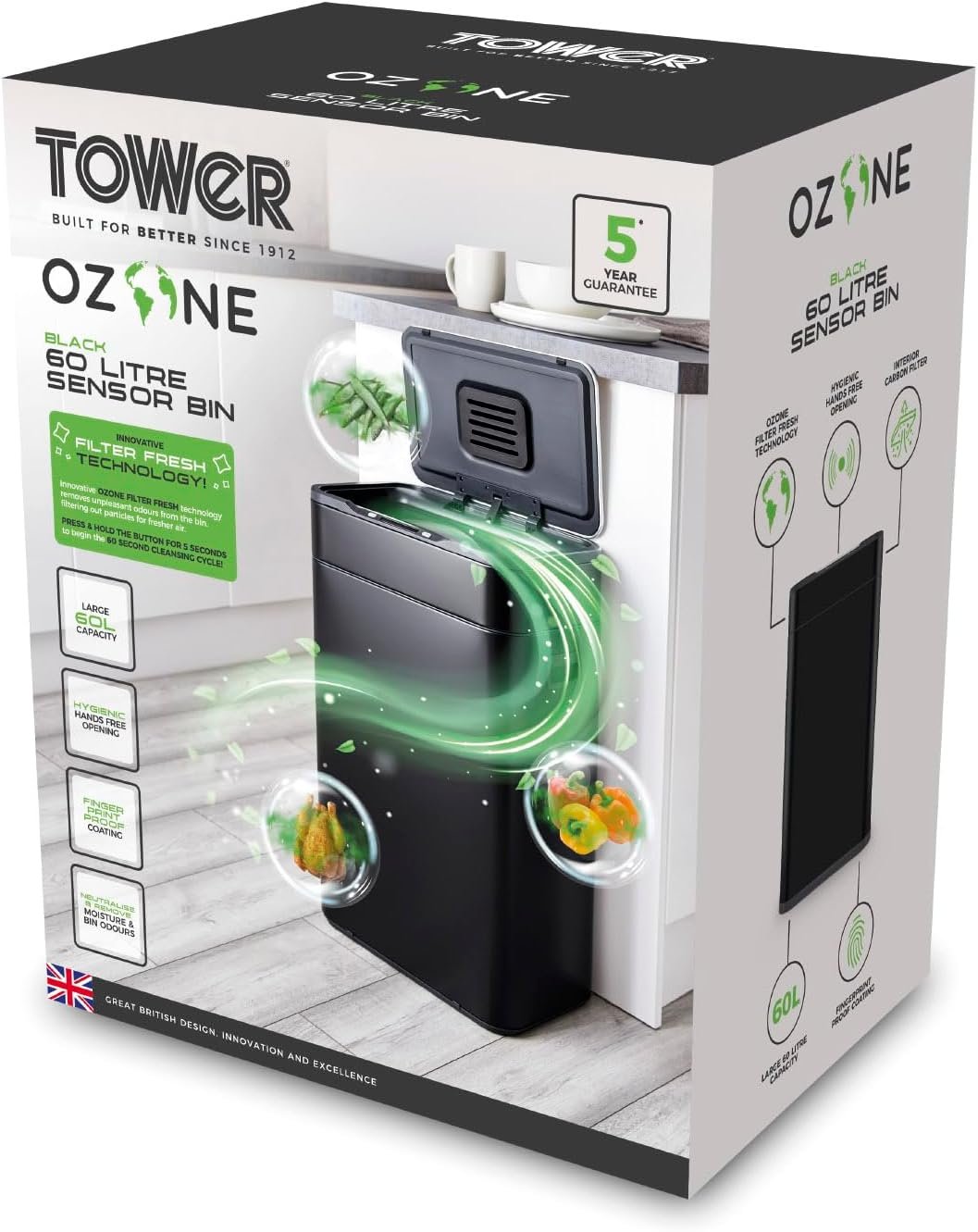 Tower T938023BLK Ozone Sensor Bin. Large 60L. Hands Free Opening. Carbon Filter. Black